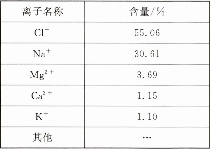$①$全球海水中含有的盐类的总质量为$5$亿亿吨$,$其中含有的各种离子占盐类总质量的百分含量如表所示: