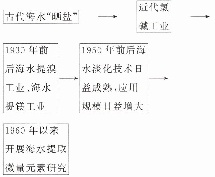 10. 海洋是个巨大的宝藏,人类利用海洋化学资源的过程大体上经历了如图所示的几个阶段。