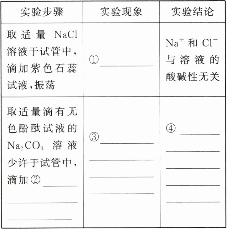 (4)从组成看$,Na_2CO_3、$NaCl均属于钠盐,NaCl溶于水呈中性,但$Na_2CO_3$溶于水呈碱性。请完善实验方案,初步探究上述性质差异的原因。