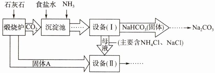 6. 工业上可以用食盐和石灰石为原料制取纯碱(Na₂CO₃),生产的关键是在沉淀池中让NaCl、NH₃、CO₂和H₂O尽可能多地转化成NaHCO₃(固体沉淀物)和NH₄Cl(溶液),主要生产流程如图所示: