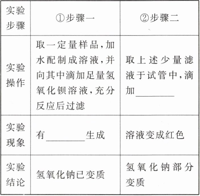 【猜想与假设】(1)甲同学猜想:氢氧化钠可能部分变质,固体为______(写化学式,下同)。乙同学猜想:氢氧化钠可能全部变质,固体为______。
