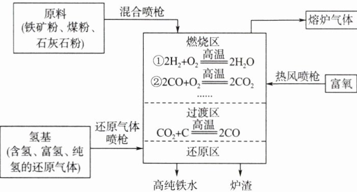 6. 氢基熔融冶金技术是利用氢作为还原剂代替碳还原剂,从而实现减少CO₂排放的目的,实现低碳冶金。氢基熔融还原生产高纯铸造生铁的主要流程如图所示(部分流程略去)。