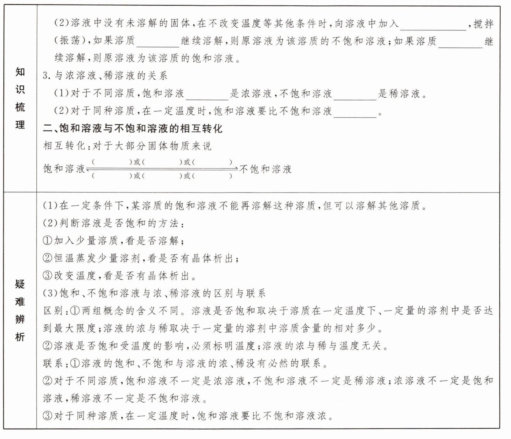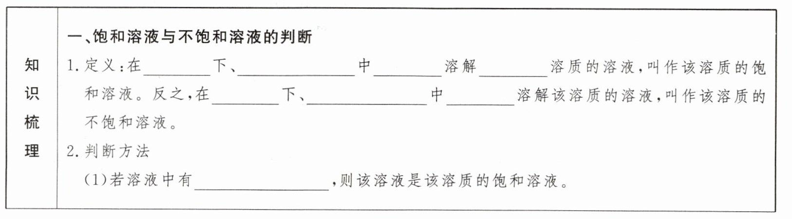 一、1.一定温度 一定量的溶剂 不能继续 某种 一定温度 一定量的溶剂 还能继续