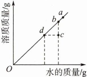 8. 如果图中的直线表示$t\ ^{\circ}C$时,某物质在不同质量的水中溶解达到饱和状态时所溶解的质量,则$a$、$b$、$c$、$d$四点表示该物质在$t\ ^{\circ}C$时的溶解情况。$a$、$b$、$c$、$d$四点对应的溶液中溶质质量分数的大小关系为(