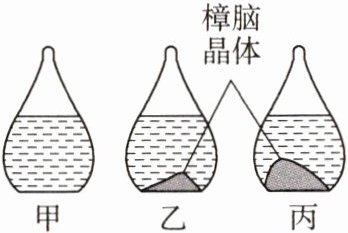 1. 某“天气瓶”通过樟脑在酒精溶液中的结晶情况反映气温变化。下图为该“天气瓶”在三种不同气温下的状况,则瓶内溶液一定为相应气温下樟脑饱和溶液的是(