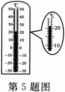 5. 妈妈对你说,今天降温了,看看墙上挂的寒暑表,自己选择合适的衣服。如图所示,关于该寒暑表,下列说法正确的是 ………………………………… ( )