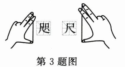 3. 我国古代把女子一拃长称为“咫”,男子一拃长称作“尺”,如图所示。“咫尺之间”用来比喻相距很近,实际“咫”与“尺”的长度相差大约为 …………………… ( )