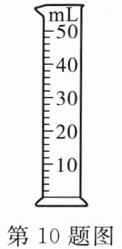 10. 小科想利用如图所示的量筒测量一枚鹌鹑蛋的体积(鹌鹑蛋能放进量筒并能沉入水底,体积约为$ 15cm^3)。$则小科加入量筒中水的体积最适宜的范围是……………………………………………… ( )
