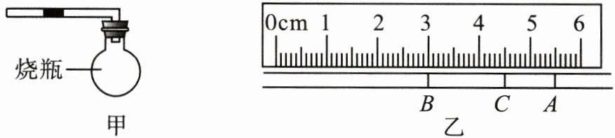 24. 小明尝试自制一支温度计(如图甲所示)。烧瓶中装有空气,装置不漏气,玻璃管中间封有一段红色液柱。小明把该温度计先后放入 10℃和 40℃的水中,依次标出红色液柱右侧到达的位置为 A 和 C(如图乙所示)。