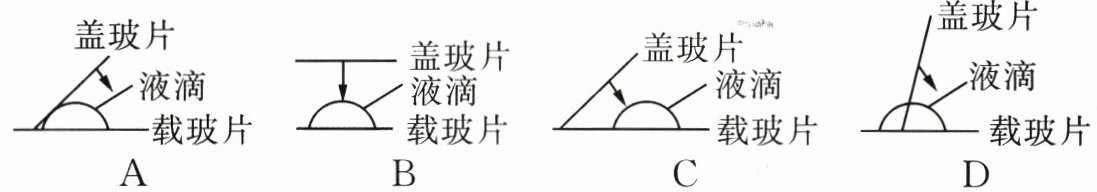 (3)正确地盖盖玻片是成功制作临时装片的关键之一。如图所示,制作临时装片时最不容易出现气泡的是(箭头表示盖盖玻片的方向)______(填字母)。