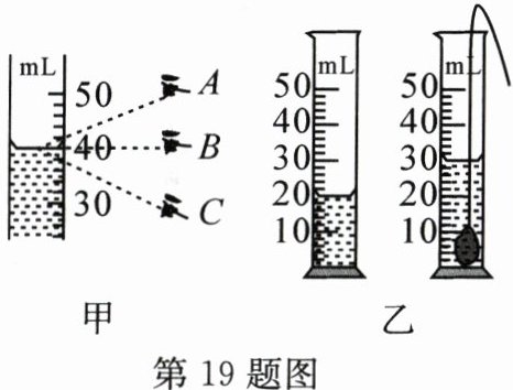 19. 量筒是常用的测量液体体积的工具。请据图回答问题。