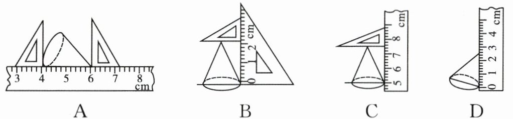 13. 如图所示为测量一个锥体高度的几种方法的示意图,其中正确的是…………………………………………………… ( )
