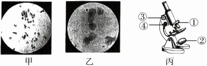 12. 小科在“观察人体口腔上皮细胞”的实验中,视野要实现从图甲变到图乙,应先调节图丙中的结构是 ……………………… ( )