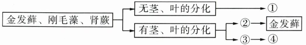 7. 小明在花卉市场观察到了金发藓、刚毛藻、肾蕨等不同植物,并尝试运用所学知识画出了概念图。下列叙述错误的是 …… ( )