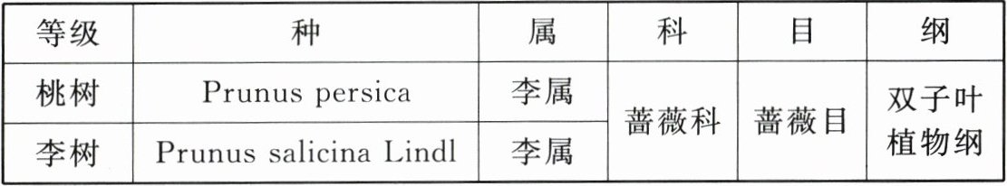 13. 6月是桃子大量上市的季节,桃树和李树的检索表如表所示。下列相关叙述正确的是 …………………………………………… ( )