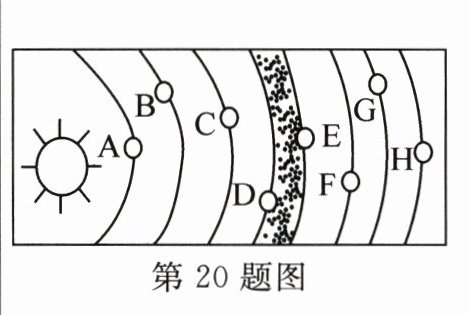 20. 请结合表中太阳系部分行星的相关数据和太阳系的结构示意图,回答下列问题。