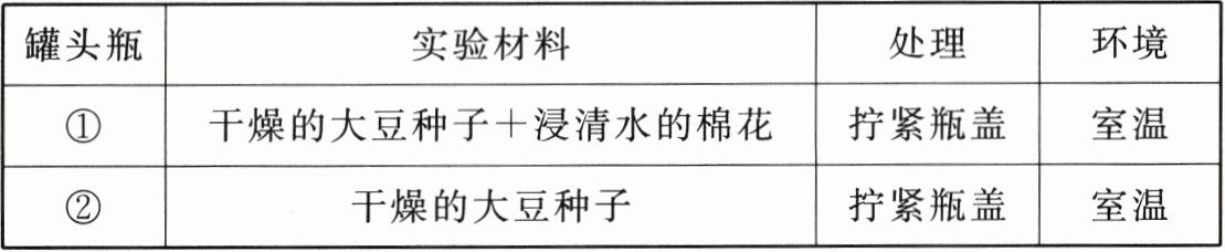 |②|干燥的大豆种子|拧紧瓶盖|室温|