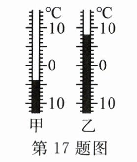 17. 图甲中温度计的示数为______$^{\circ}C$,读作______;图乙中温度计的示数为______$^{\circ}C$。