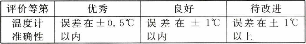 (2)小科根据如下评价量表对自制温度计进行自评。