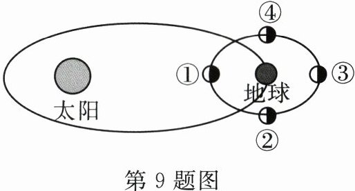 9. 观测者站在地面观察某天文现象,当时太阳、地球、月球的关系如图所示。对于观测者当时看到的天文现象,下列叙述正确的是 …………………………………………………………………( )