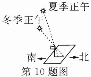 10. 如图为浙江某地在夏季和冬季的正午杆影长度。下列有关结论正确的是 ……………………………………………………( )