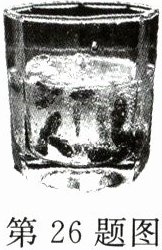 26. (4 分)小明同学在网络微课上看到了一个有趣的实验——“舞动的葡萄干”:刚倒入玻璃杯的雪碧会产生许多气泡。此时,将一些葡萄干放入杯中,有些葡萄干沉入杯底,当气泡附着在葡萄干表面后,葡萄干会向上浮起,上浮到液面后又会重新沉入杯底。请解释葡萄干会上下“跳舞”的原因。