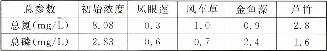 步骤 2:每个处理设置 3 个重复组,20 天后测定水体总氮、总磷浓度,求平均值,结果记录如表: