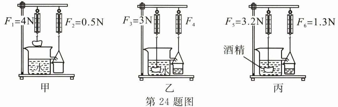 24. 兴趣小组利用弹簧测力计、物块、溢水杯、小桶、铁架台等器材验证阿基米德原理。(细线的质量和体积均忽略不计)