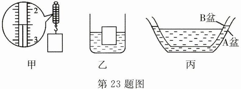 23.在学习浮力时,小金有疑问:浮力大小是否与水的多少有关?10N的水能产生多大的浮力?