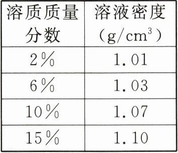|溶质质量分数|溶液密度$(g/cm^3)$|