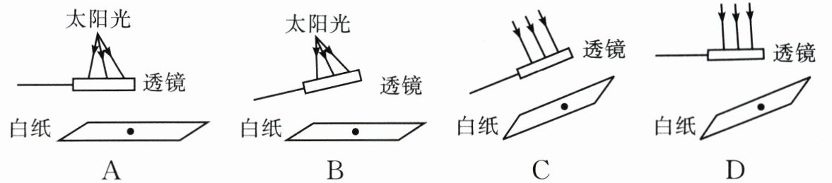 8.小明利用太阳光测量凸透镜的焦距,下列操作最合理的是 ( )