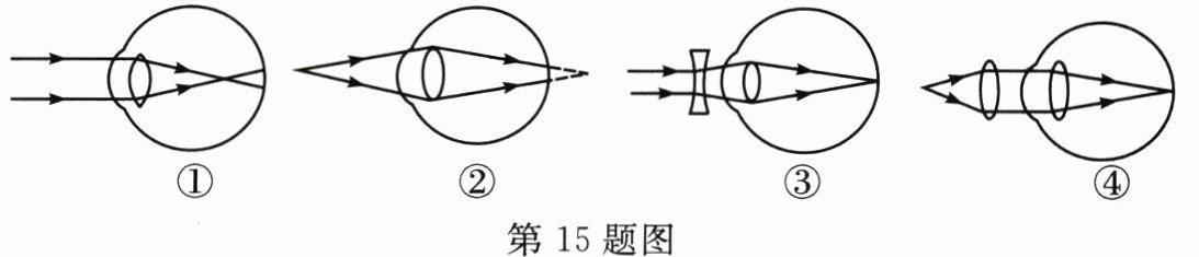 15.下列四幅图,属于近视眼及其矫正的是……………………( )