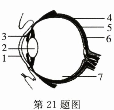 21.据调查,现在初中生近视率较高,这引起了社会各界对学生用眼卫生的高度关注,请结合眼球结构示意图,回答下列问题。