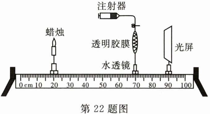 22.为进一步探究“眼睛成像的特点”,小敏同学自制了水凸透镜来模拟晶状体,如图所示。