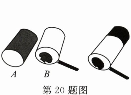 20.如图所示,是一个自制照相机。纸筒A的一端蒙了一层半透明纸,纸筒B的一端嵌了一个凸透镜。纸筒A能在纸筒B中前后移动。用该照相机观察物体时,应该使物体恰好处于透镜的______(填“两倍焦距之外”“一倍焦距和两倍焦距之间”或“一倍焦距以内”)。把纸筒对着明亮的室外,半透明纸上恰能呈现清晰的像。若想看到更多的景物,应该将照相机______(填“靠近”或“远离”)景物,同时______(填“增大”“减小”或“不改变”)凸透镜和半透明纸之间的距离。