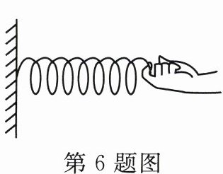 6.如图所示,用手拉弹簧使弹簧伸长,弹簧发生了形变。关于该实验,下列说法错误的是…………………………………………………( )