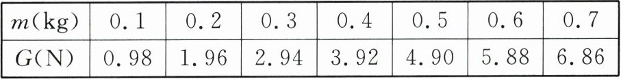 C.由表格数据得:物体所受的重力大小与其质量成正比