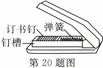 20.如图订书机钉槽内的订书钉之所以不会松脱,是因为固定在槽内部的弹簧给订书钉一个向______(填"左"或"右")的压力。在使用过程中,随着订书钉的减少,弹簧的压力将______(填"增大""减小"或"不变")。