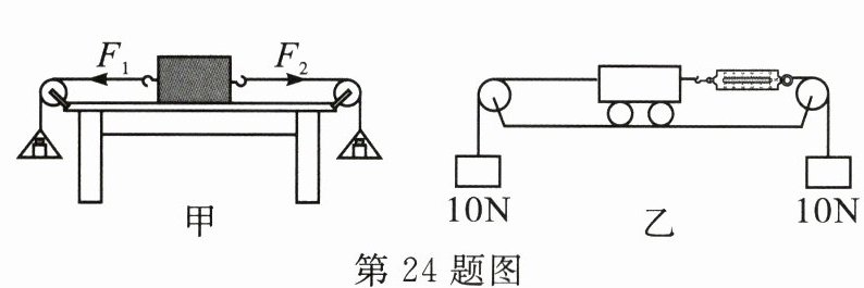 24. 在探究“二力平衡的条件”的实验中,某同学采用的实验装置如图甲所示。