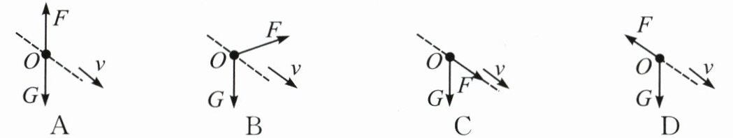 2.探月三期载人返回试验器返回舱顺利返回时,在无风状态下,返回舱接近地面时沿着一条斜线匀速下落。用 G 表示返回舱重力,F 表示空气对它的作用力,下列对返回舱受力情况的分析,正确的是 ………………………………………………………………… ( )