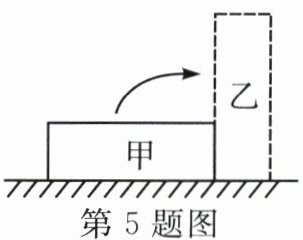 5.如图所示,将水平桌面上的长方体物块由甲所示状态沿顺时针方向竖起后成乙所示状态。物块和桌面的接触面积分别为 $S_{甲}$ 和 $S_{乙}$ ($S_{甲}>S_{乙}$)。物块处于甲、乙所示状态时对桌面的压力分别为 $F_{甲}$ 和 $F_{乙}$,对桌面的压强分别为 $p_{甲}$ 和 $p_{乙}$,则有 …………………… ( )