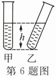 6.如图所示,两个完全相同的试管甲和乙,分别装有质量相等的液体,两个试管中的液面相平,则试管底部所受液体压强较大的是( )