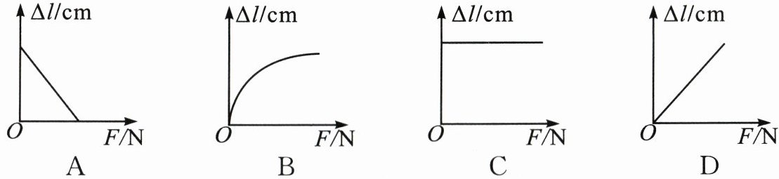 4. 弹簧测力计的原理:在弹性限度内,弹簧的伸长量$\Delta l$与受到的拉力F成正比。如图所示的图像中,能正确表示这一关系的是 ( )