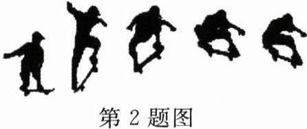 2. 如图所示,滑板运动员站在滑板上,做出特定动作能够使滑板升到空中。在此过程中,使滑板向上运动的力是 ………………… ( )