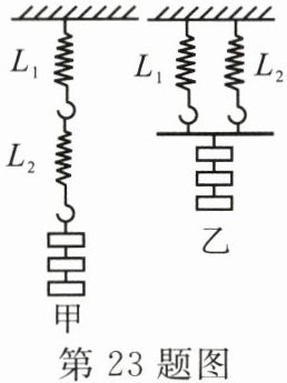 (3)若现有和上面相同的两根弹簧$L_{1}$、$L_{2}$,组成如图甲、乙两种装置,则图甲中弹簧$L_{1}$、$L_{2}$的长度均为______cm,图乙中弹簧$L_{1}$、$L_{2}$的长度均为______cm。(弹簧的重力不计)。