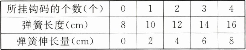 |弹簧伸长量(cm)|0|2|4|6|8|