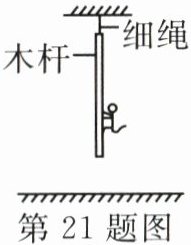 21. 如图所示,一根有一定质量的木杆竖直悬挂在细绳下端,一只质量为10kg的猴子抱住木杆处于静止状态。