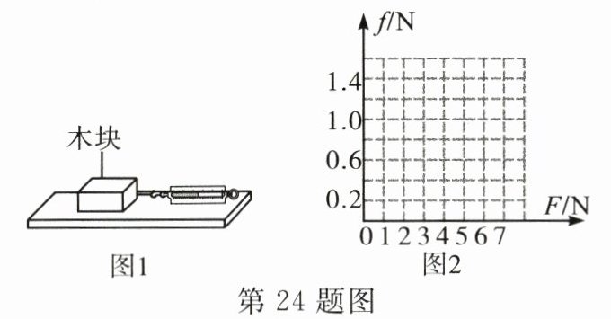 24. 用图1所示的装置探究“摩擦力大小跟压力大小的关系”,木块各表面的粗糙程度一样。请回答下列问题。