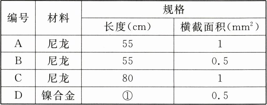 为了验证上述猜想是否正确,他们找到了下表所示的4种规格的琴弦,进行实验。