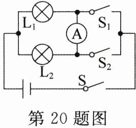 20. 在研究并联电路电流特点的实验中,小金设计了如图所示的电路图,并按电路图连接了电路。